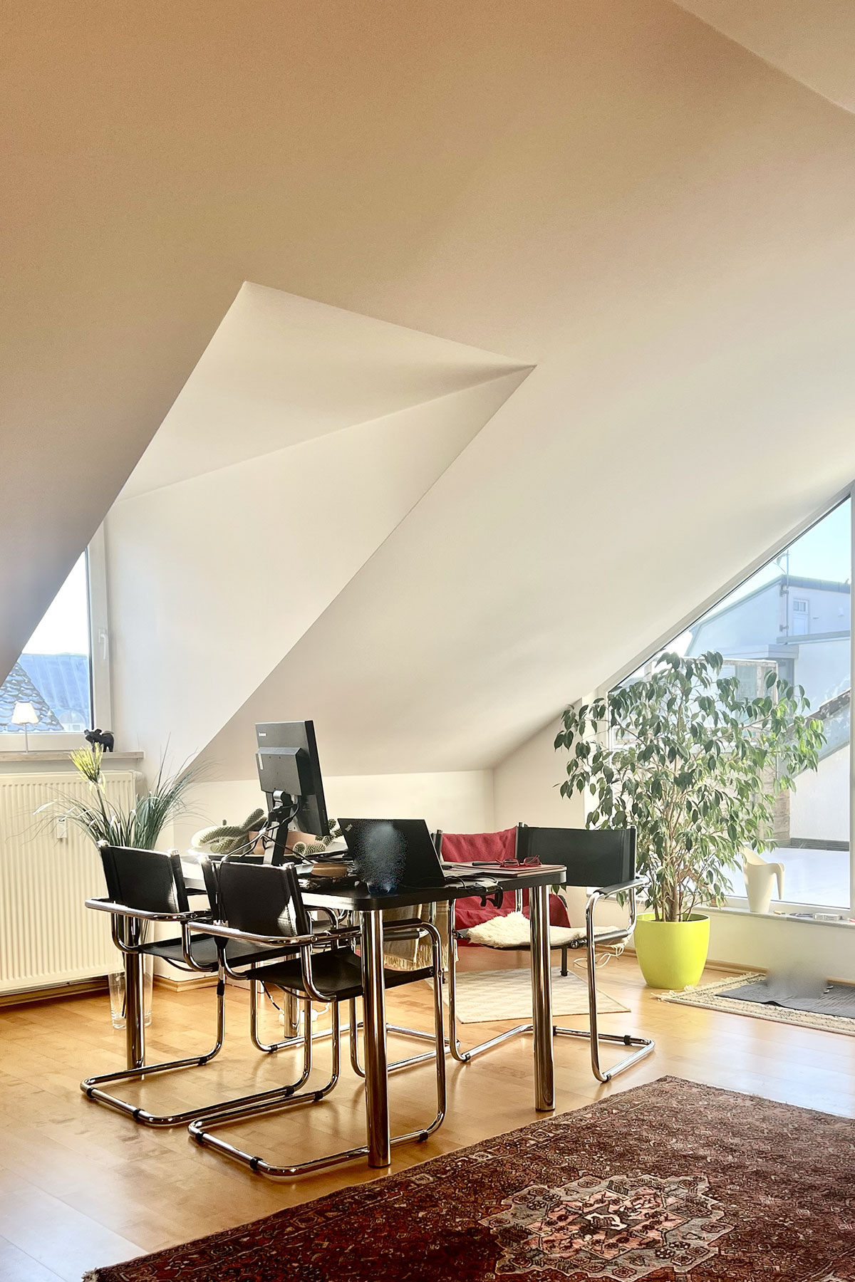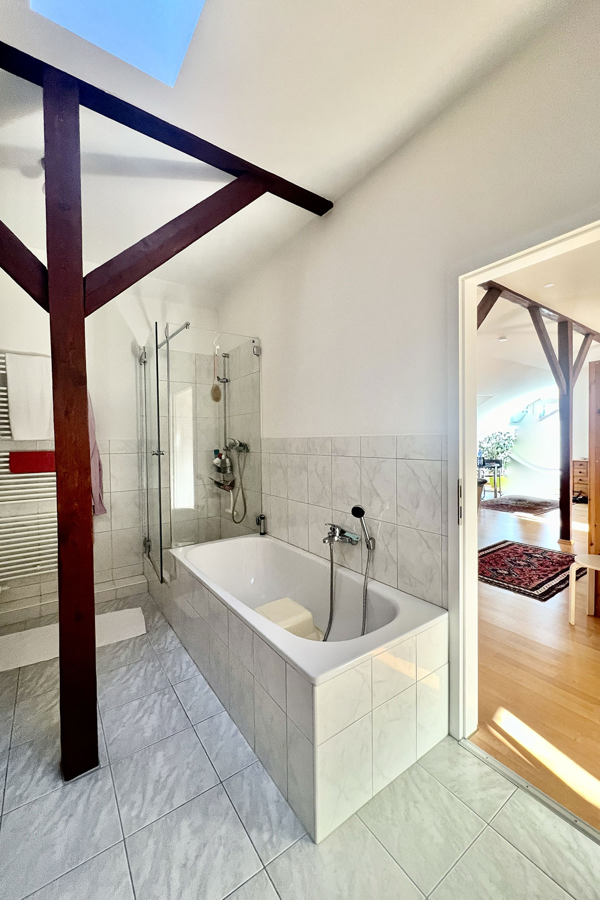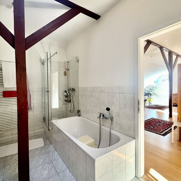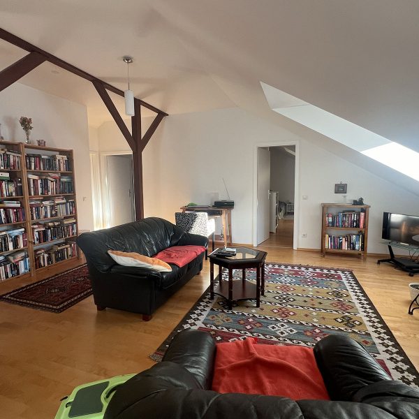 Erleben Sie urbanes Wohnen in unserer exklusiven Studiowohnung mit ca. 135 qm im 4. Stock eines Jugendstilhauses von 1910. Die Wohnung wurde 2002 kernsaniert und bietet moderne Ausstattung sowie eine großzügige Dachterrasse mit Blick über Augsburgs Innenstadt.