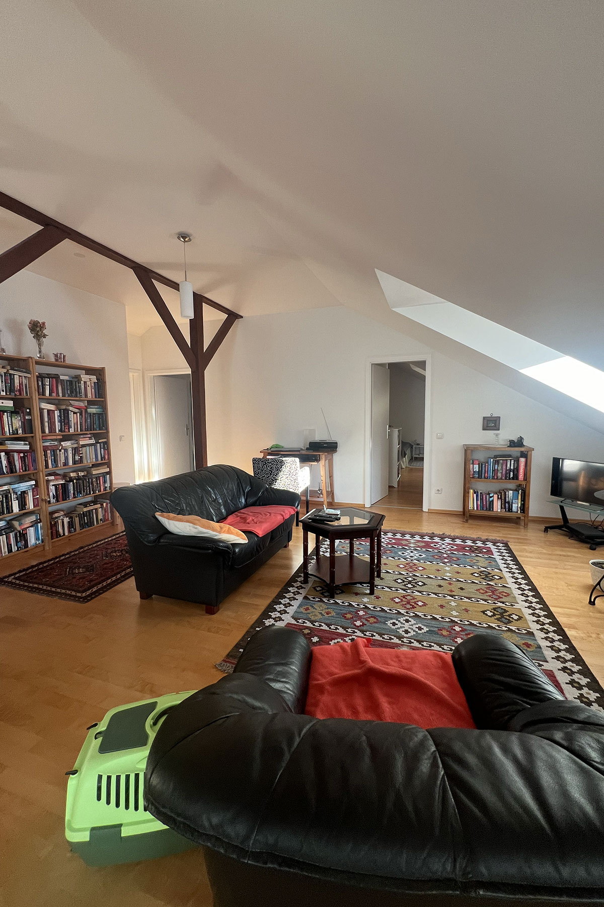 Die Studiowohnung liegt im Bismarckviertel, wenige Gehminuten vom Bahnhof entfernt. In unmittelbarer Nähe befinden sich Cafés, Einkaufsmöglichkeiten und Restaurants. Trotz zentraler Lage bietet die private Terrasse einen ruhigen Rückzugsort.